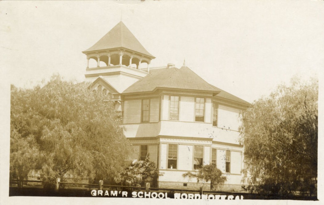 Here’s another vintage Ojai photo, this one of Nordhoff grammar school, circa 1917.  (Although on the postcard, it looks like it’s spelled “Gram’r School.”  No wonder they went out of business.)